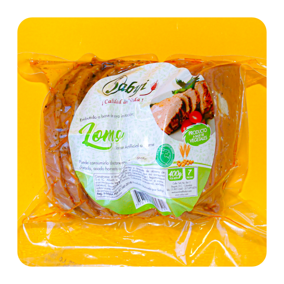 Ingredientes: soya, cereales (trigo), leguminosas (arveja), linaza, ajonjolí, sal, saborizante imitación a carne, saborizante imitación a chorizo, Colorante (eritrosina), sorbato de potasio (conservante).